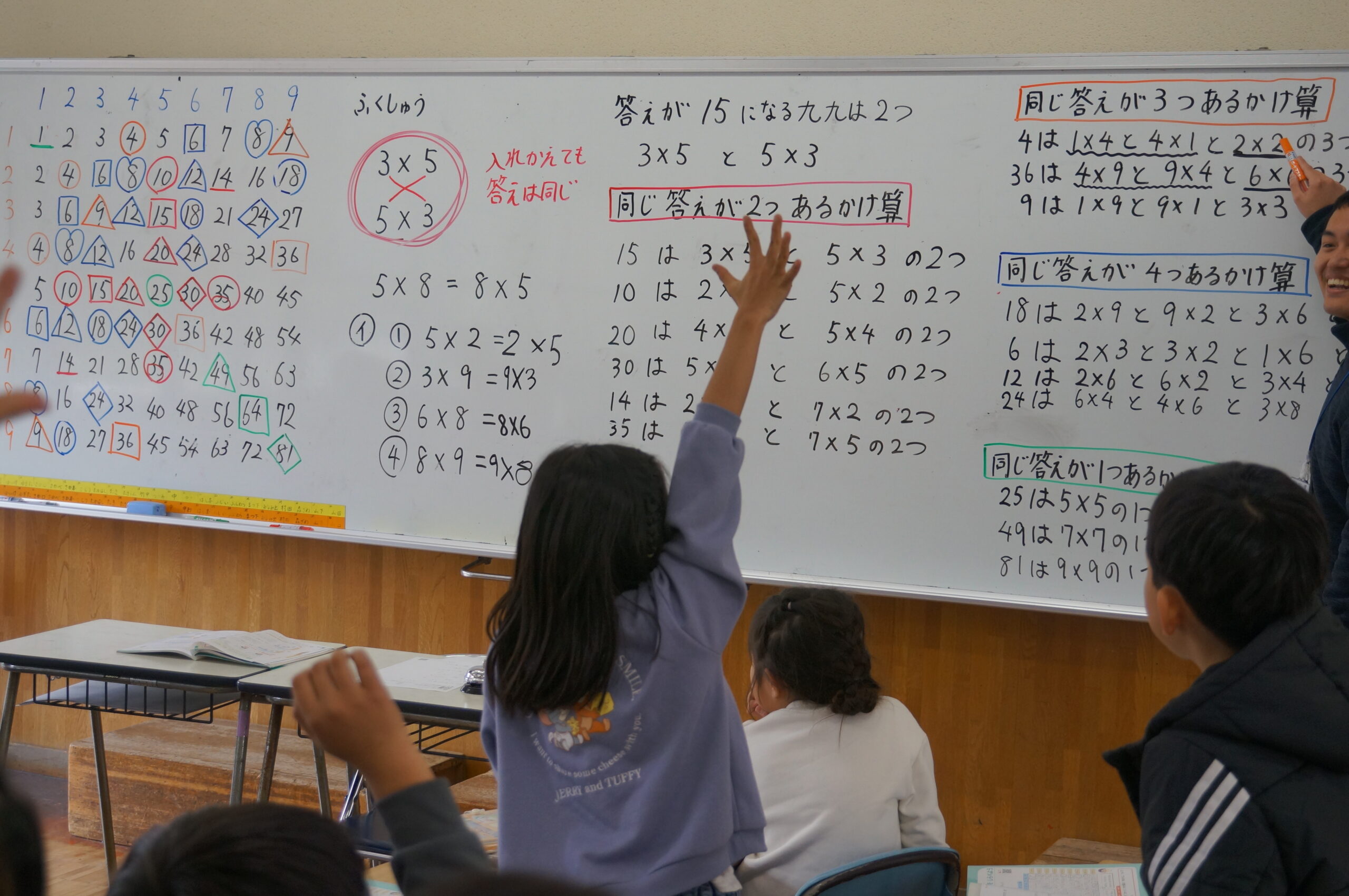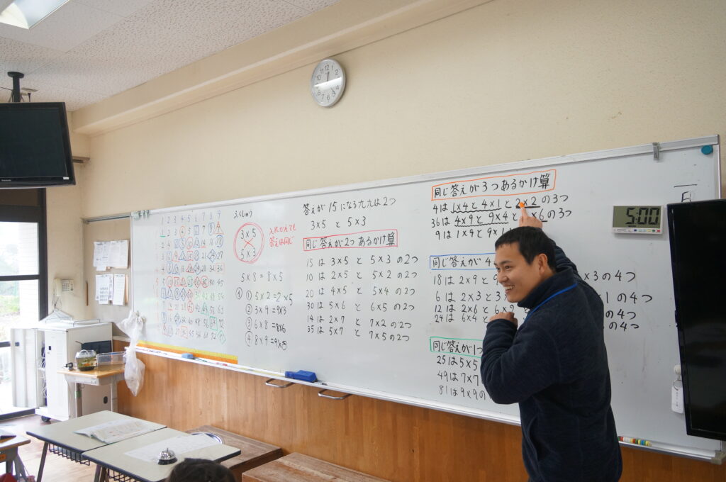 こちらの教室では,板書に掛け算山盛り(o^ー’)b