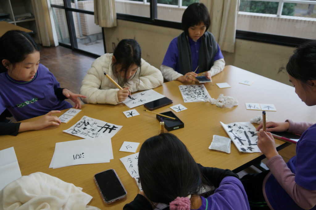 サムネのミニミニ色紙は,「飛」という字を毛筆で書いたもの。「好きな字を漢字で,毛筆で書こう!」のコーナー。その子は,飛行機が好きなので,「飛」にしました。僕が書いたお手本を見ながら,と~ってもアジのあるミニ色紙が完成しました。