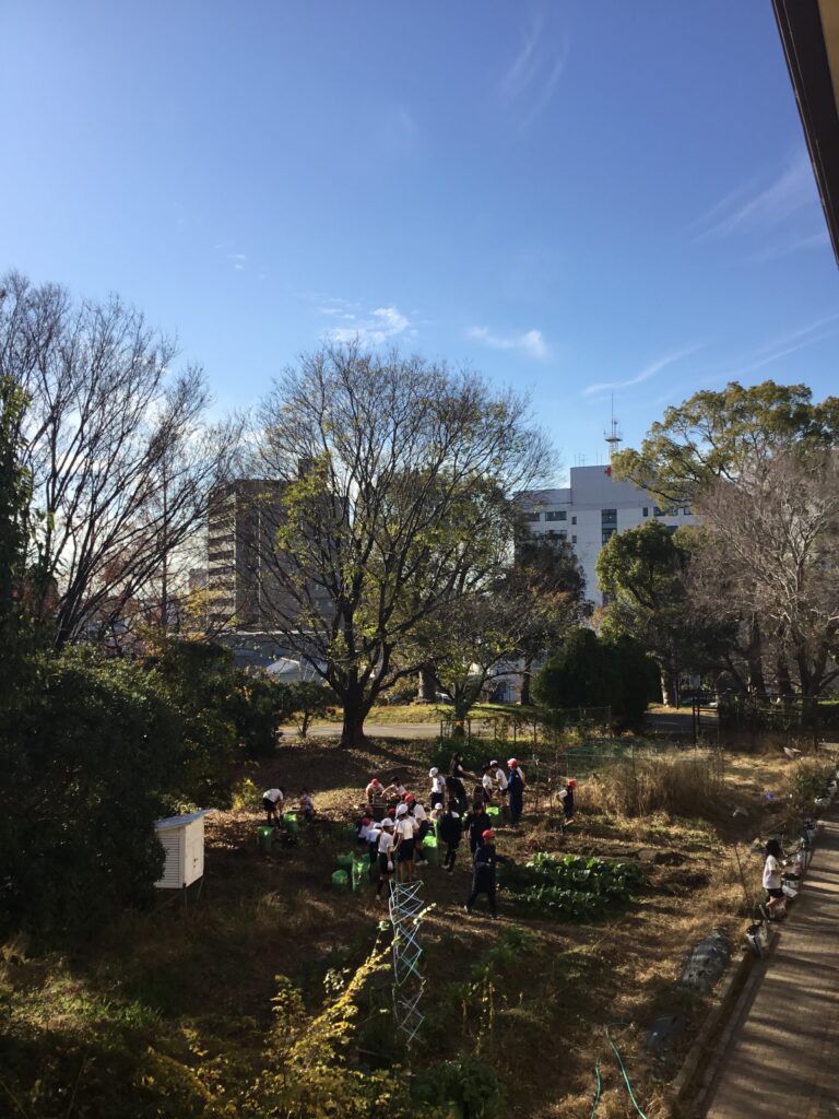 向こうの学級農園では何をしているのかな?5年生が,チューリップを植えていました。もしかして,ちょっと遅かった?春に間に合いますように(o^ー’)b