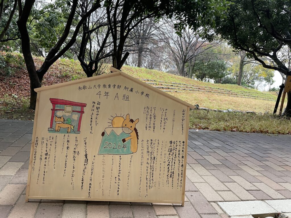 巨大な絵馬を発見!子どもたちの願いが書かれています。