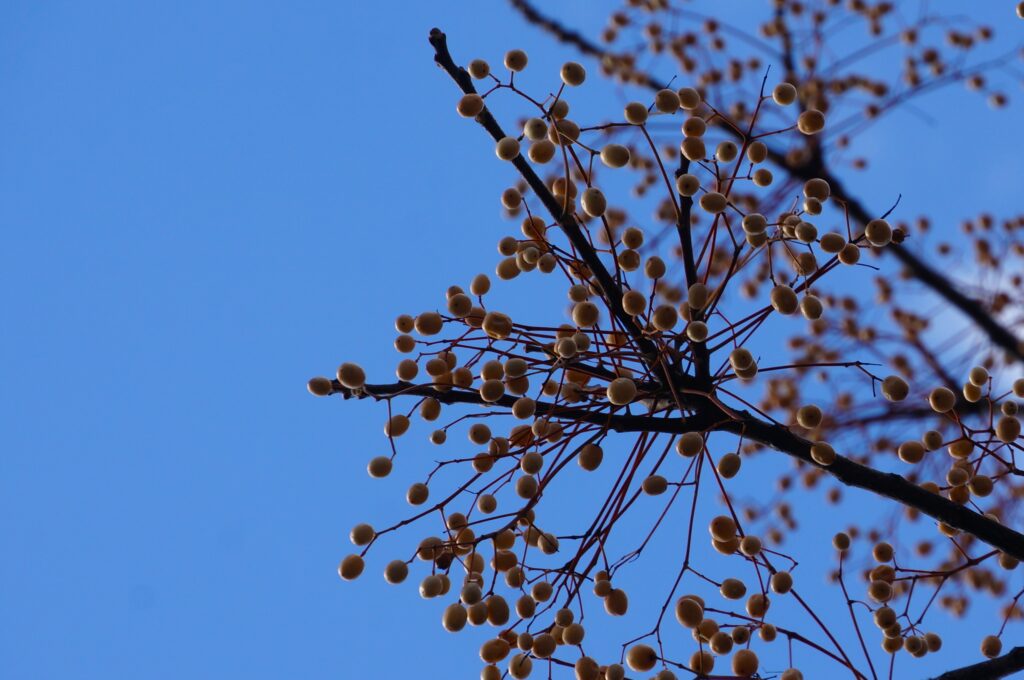 その付近では,サムネにもある樹の実を見ることができます。本名は忘れましたが,僕は勝手に「モチモチの木」だと思い込んでいます。うちの学校では,樹の実をたくさん観察できます。ヤマモモ,ミカン,ユズ,クワ,ビワなどなど。