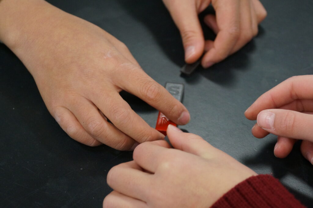 久しぶりに理科室へ。磁石で実験をしていました。みんな楽しそう。だって,磁石には,目に見えない不思議があるから。身の回りでもたくさん使われているし,なんか不思議だし。楽しい教材です。