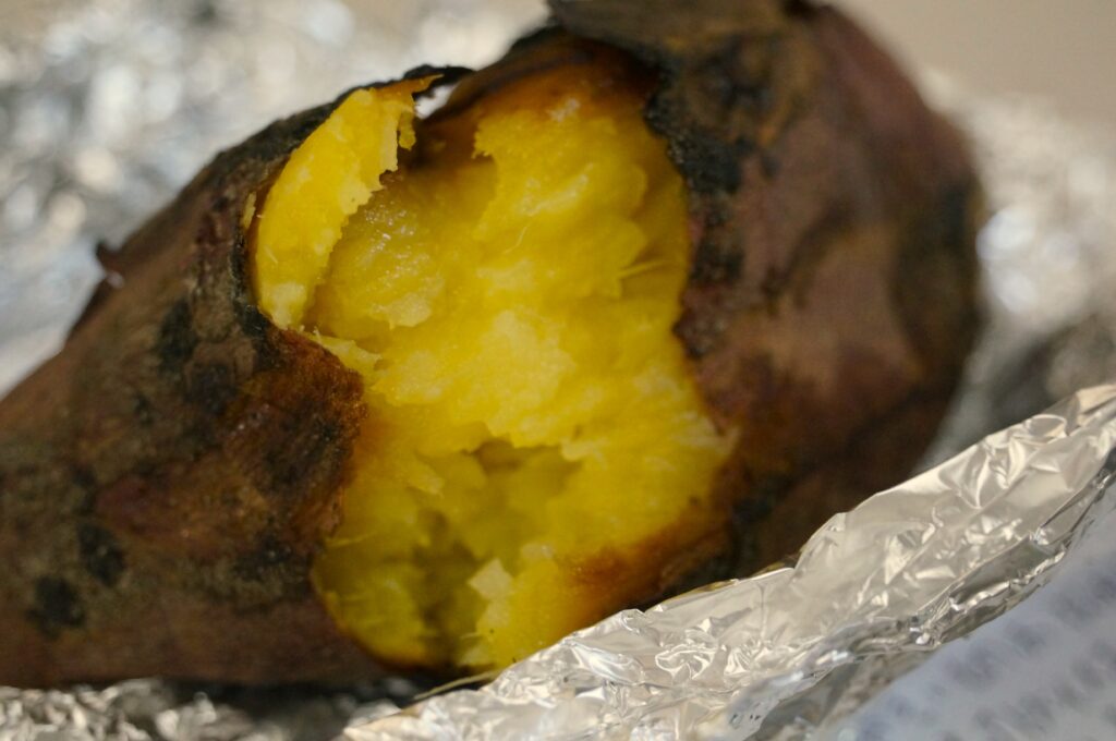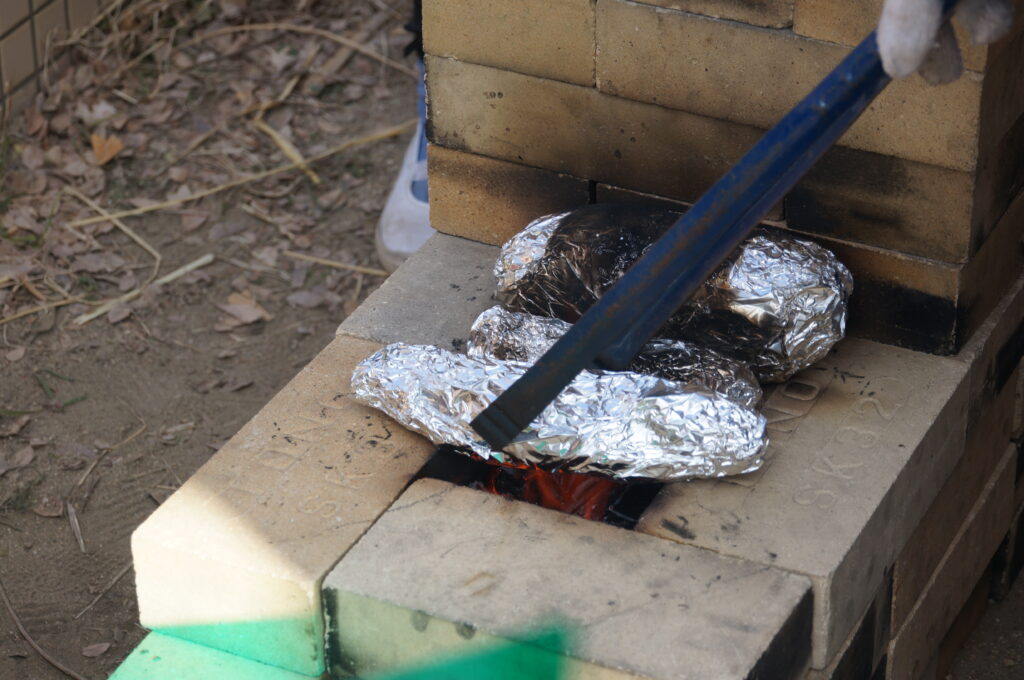 ロケットストーブで,焼き芋を楽しむ6年生を発見!