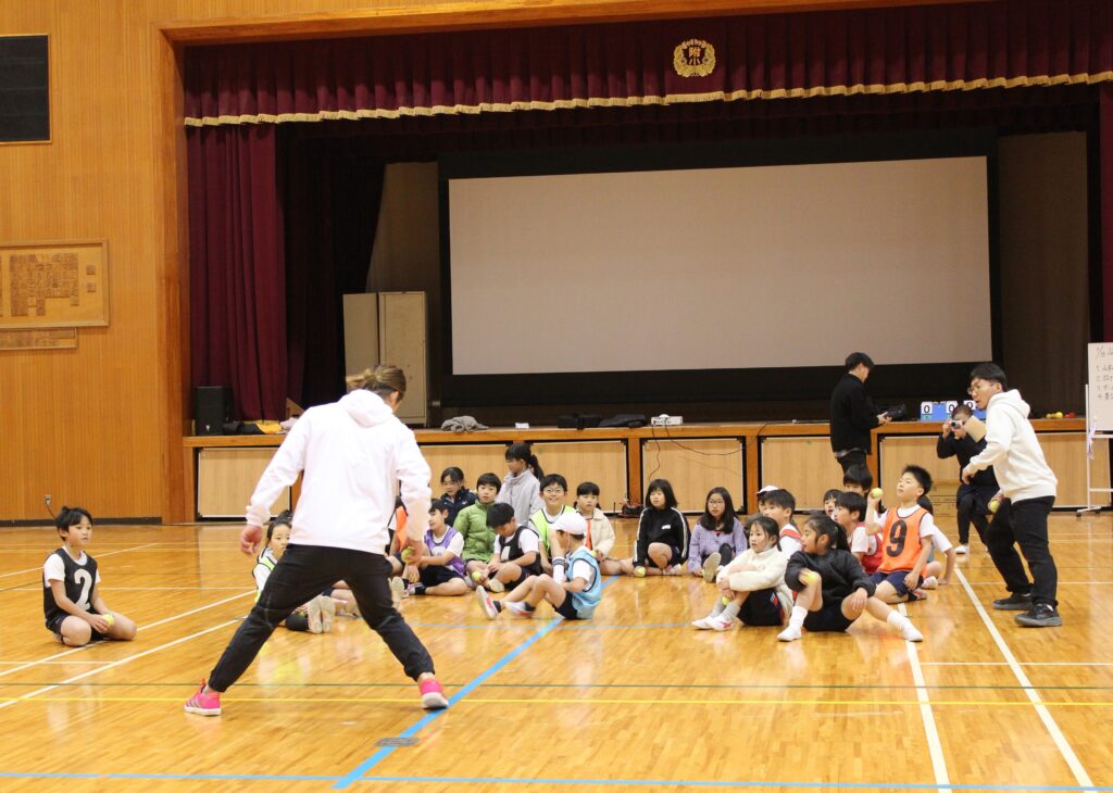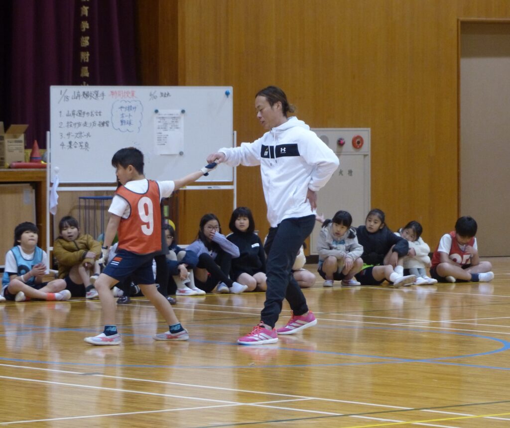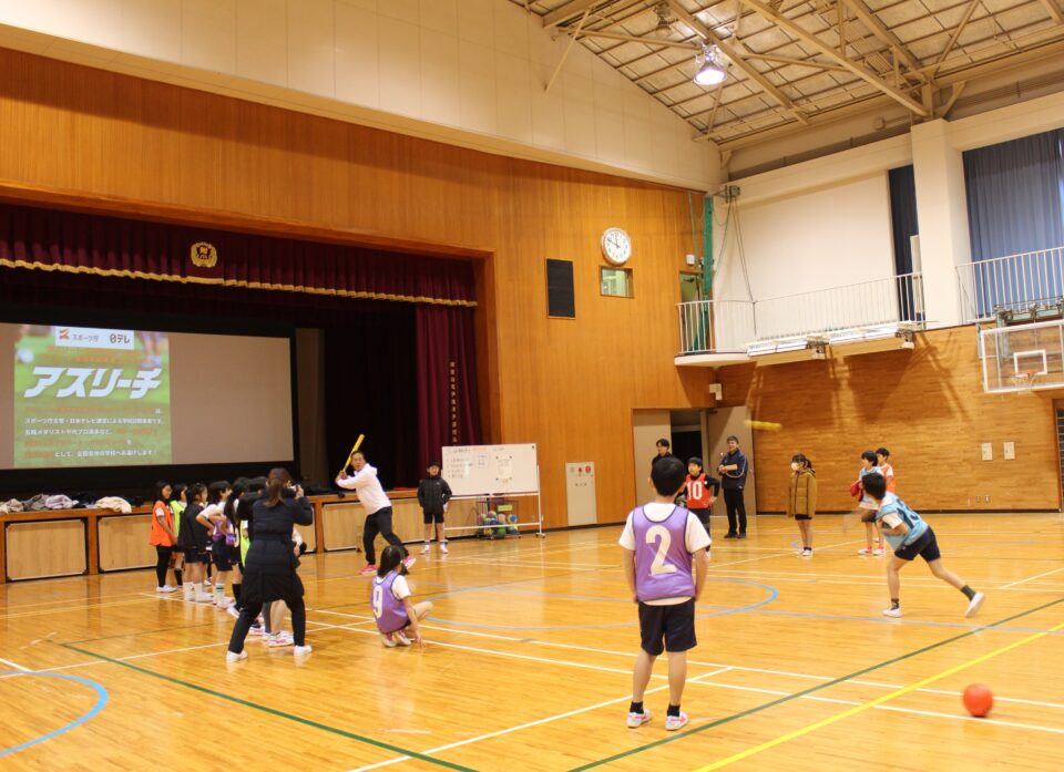 授業後,野球選手としても活躍されている山岸さんが,バットでボールを大きく打つ場面では,体育館いっぱいに歓声が広がり,子どもたちにとって心に残る,楽しく充実した時間となりました。