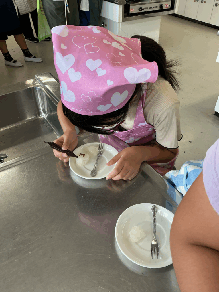 CHANGE(総合的な学習の時間)で1学期からみんなが美味しいと思ってもらえるわらび餅を作ってきました。何度も作ることで、素早く美味しくわらび餅を作ることができるようになってきました。今は、美味しいだけでなく、見た目もかわいいわらび餅を目指して試行錯誤をしています。