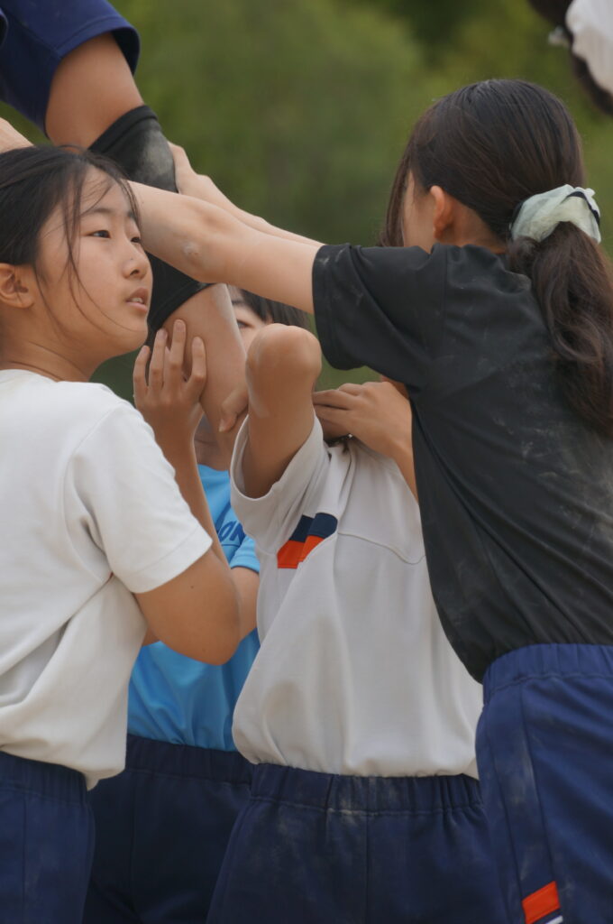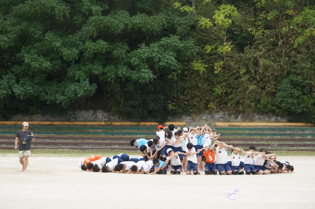 6年生の練習で,音楽のタイミングを確かめに出かけました。