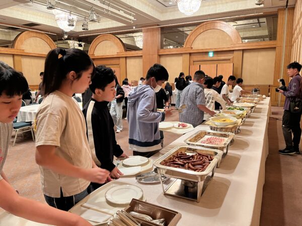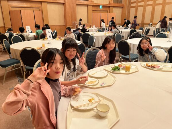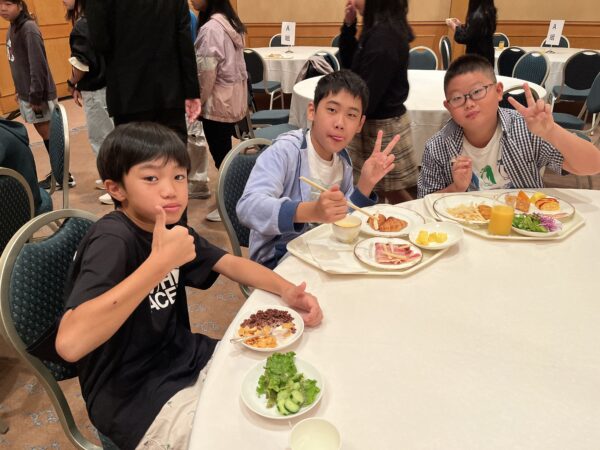 少し眠たそうな子たちもいますが,みんな元気に朝ごはんを食べました。ホテルの方に感謝の気持ちを伝えて出発しました。